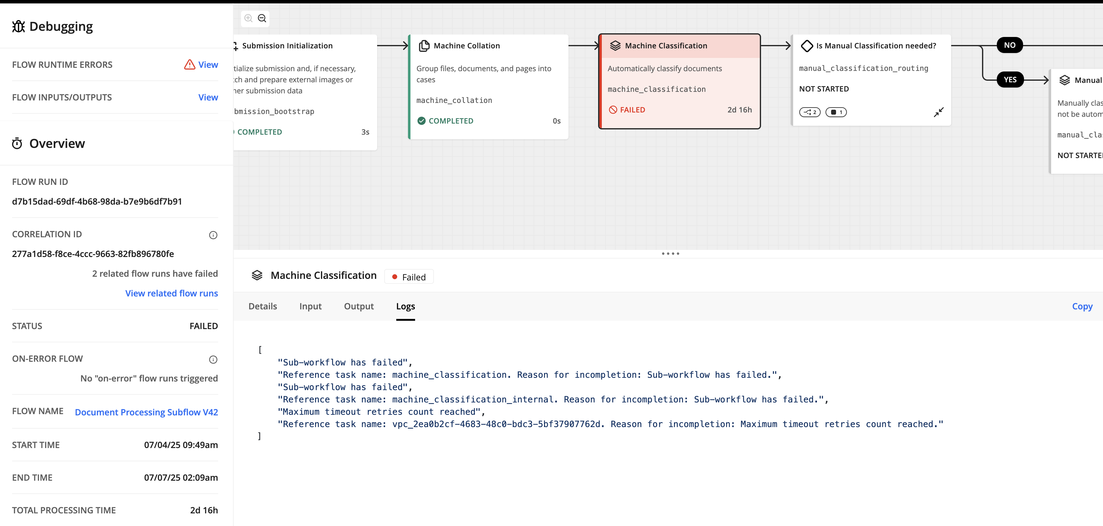 Now we can use our testing and debugging tools to better understand how your flow processed those documents. Click on the completed submission’s ID, then click Actions and select View Flow Run. If you used the provided IDP Starter Flow and sample document, you should see that the document processed without error.